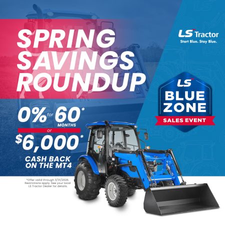 Your Power. Your Price. Your Choice. The LS Tractor MT4 is built for those who need more: more horsepower, more lift, and more versatility. Now, we’re giving you more ways to save. Choose 0% financing for 60 months to keep…